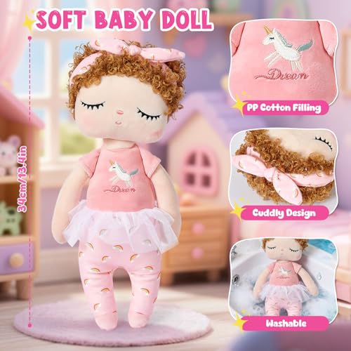 【Adorable 34cm Rag Doll】: This plush toy is made of soft fabric and filled with PP cotton, gentle on the touch and safe for children's delicate skin. It is hand-washable or machine-washable. Changing the doll's clothes encourages role-playing and promotes the development of fine motor skills. This adorable plush toy comes with a baby bottle for endless fun.