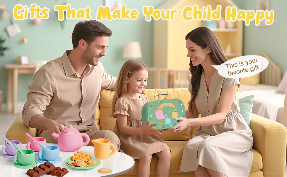 【Tea Set for 3-5 year old children】, featuring rich colors and natural elements, this tea set boasts a unique appearance. Whether it's for family time, a children's birthday party, or a picnic, this tea set is guaranteed to provide endless fun. The portable suitcase design is easy to store and transport, allowing children to enjoy their playtime anytime, anywhere.