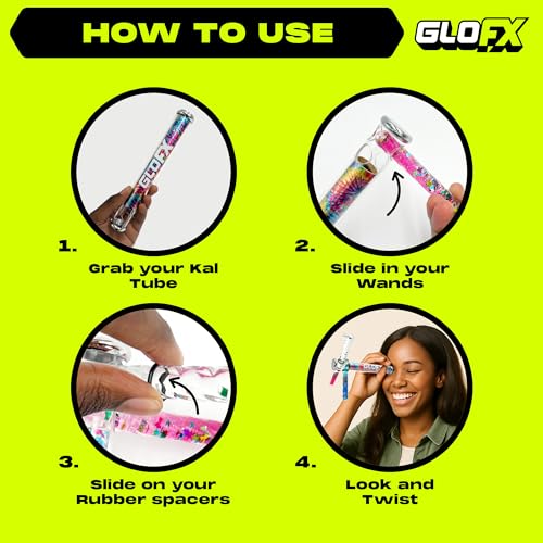 GloFX Silver Holographic Liquid X Kaleidoscope Tube Toy – 6 Glitter Wand Colors – Includes Tube, Wands & Spacers – Premium Sensory Toy for Ages 15+