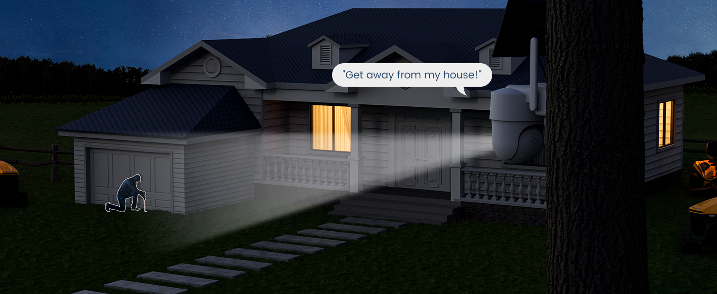 - Sound and Light Alarm & Two-Way Audio: When motion is detected, the outdoor security camera wireless will automatically sound alarms to scare intruders and send notifications to your phone. You can remotely warn or communicate with people near the camera