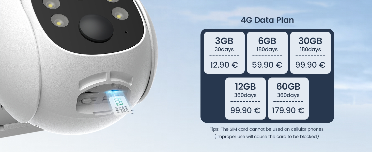 - Local SIM Card & TF SD Card Included: Enjoy 300 MB of free data with an included 4G LTE SIM card. GNCC outdoor camera wireless supports two storage options—local storage (up to 128GB) for enhanced privacy, and cloud storage (30-day free trial) for greater space savings.