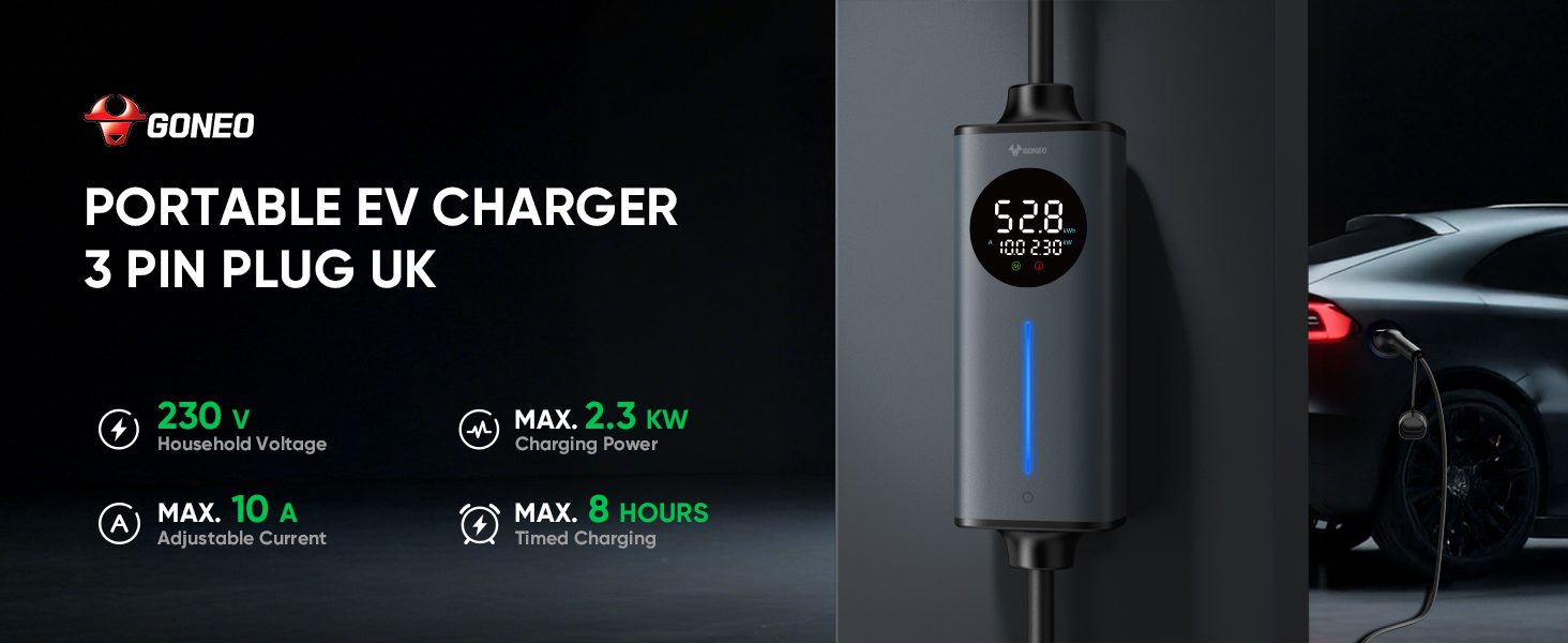 GONEO Portable EV Charger 5M 10A Type 2 Single Phase,UK 3