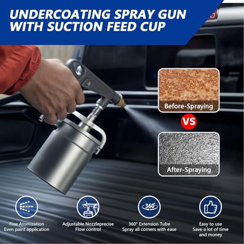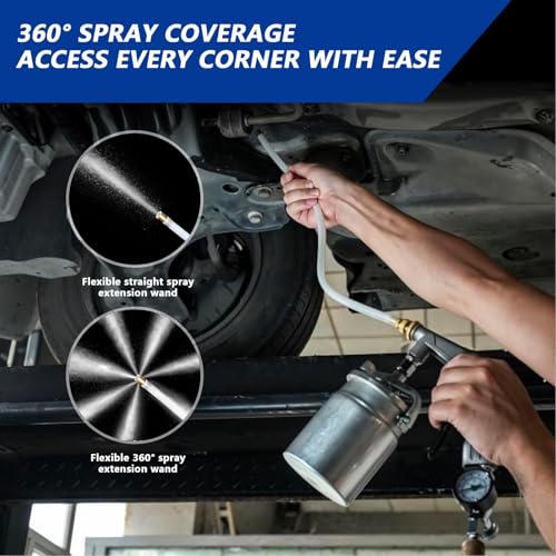 - [Comprehensive Coverage] The spray gun's innovative design ensures access to hard-to- gaps and holes, providing thorough coverage with rustproof coatings. no spot is left untreated, making it ideal for automotive undercoating and prevention. its nozzle delivers an even layer of protective coating, ensuring long-lasting durability and performance.