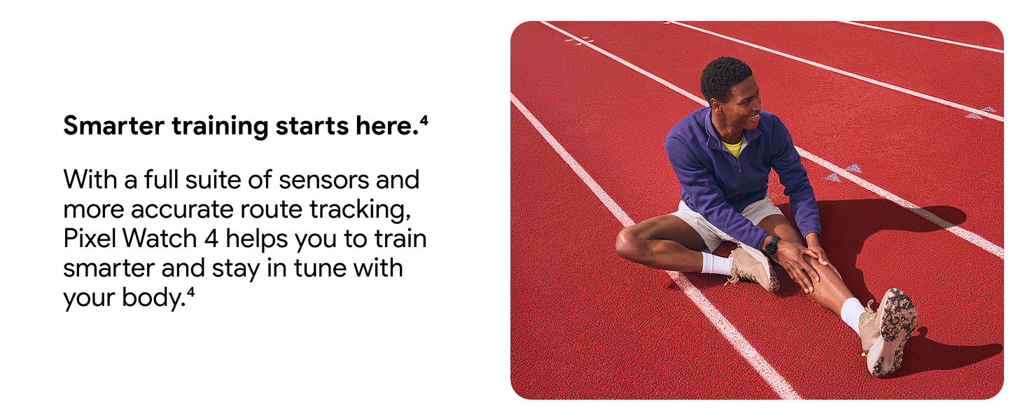 Training smarter starts with the Pixel Watch 4. It connects the dots between your activity and recovery, so you can make informed decisions about your workouts and optimise your performance.