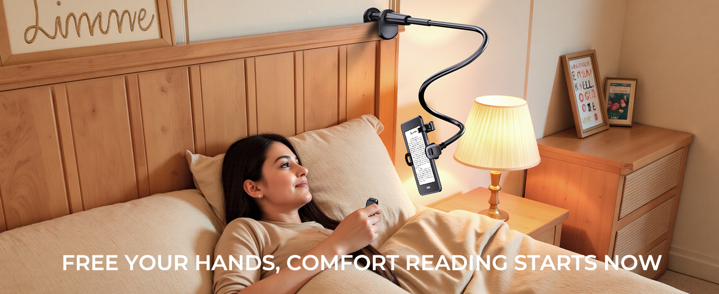 - [ Hands-Free Kindle Accessories ]: A must-have Kindle holder for bed, this accessory lets you turn pages effortlessly without touching the screen. No Bluetooth or WiFi is required—just relax in bed, enjoy hands-free reading, and keep your hands warm under the covers with this Kindle stand for reading in bed