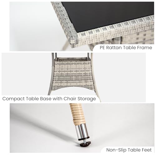 - Versatile Garden Furniture: Perfect as a rattan garden table and chairs set for everyday dining, this furniture also works as a casual outdoor dining table and chairs for the patio, poolside, or terrace, and can even be used indoors when needed.