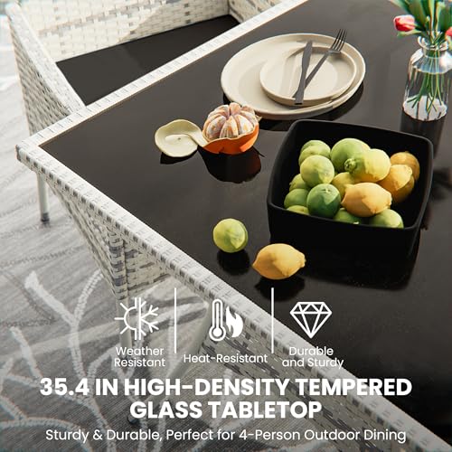 - Spacious Outdoor Dining Table: Measuring 35.4in x 35.4in, the square patio dining table features a tempered glass top that is heat-resistant and sturdy, giving you plenty of space to serve food and drinks for up to four people.