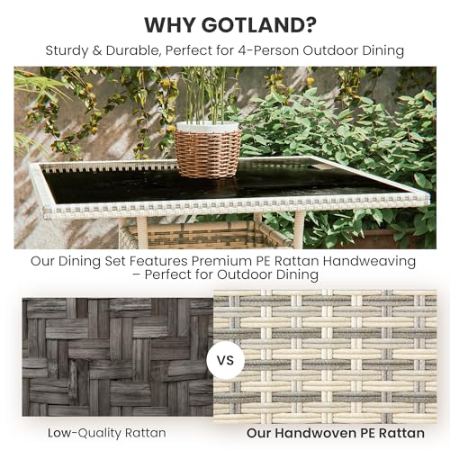 Gotland outdoor dining set, 35.4 x 35.4 rattan garden table and chairs with removable cushion covers for 4 people, Fully Assembled & Weather-Resistant, Black