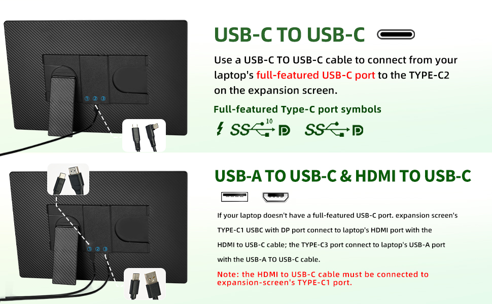 Dual USB-C & HDMI Connectivity: Features two full-function USB-C ports (supporting video, power, and data) plus HDMI input for versatile connectivity. Works seamlessly with Windows, Mac, and Android devices. Note: Some devices may require separate adapters.