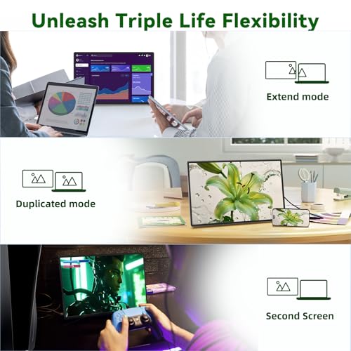 Adjustable Stand & Multiple Viewing Modes: The flexible stand allows 90° tilt and 360° rotation for optimal positioning. Switch between portrait and landscape modes, and choose from Duplicate, Extend, or Second Screen display options. Backed by a 1-year warranty.