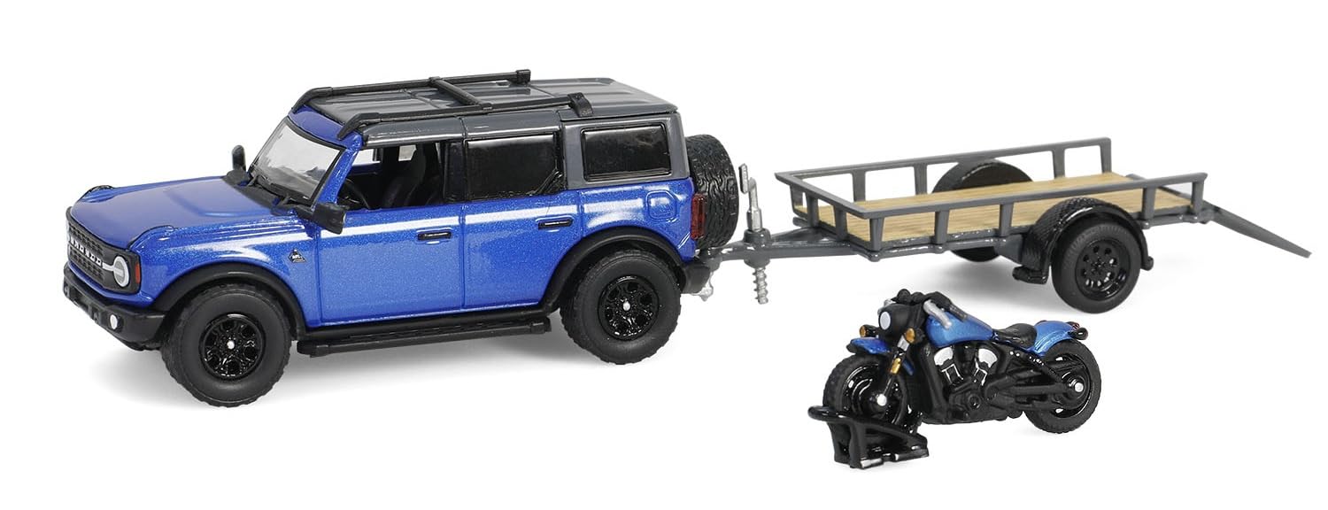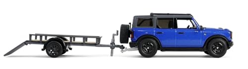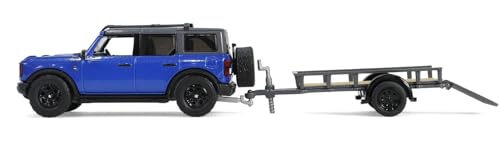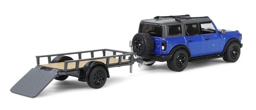 Greenlight Collectibles 32320-C Hitch and Tow Series 32-1:64 Scale Diecast Model – 2021 Ford Bronco Black Diamond – Velocity Blue Metallic with Utility Traile