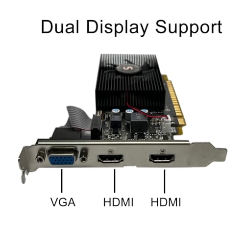 【2 HDMI, 1 VGA】Dual HDMI supports up to 2 displays simultaneously. For playing streaming video, office work, stock trends, web browsing, and daily use, this video card will work well at the budget level.