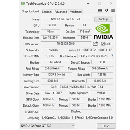 【Compatibility】This GT730 Fermi architecture only supports DirectX 11, it's compatible with Windows 7, 8, 10 32-bit, NOT with Windows 10 pro, Windows 10 64-bit and Windows 11.