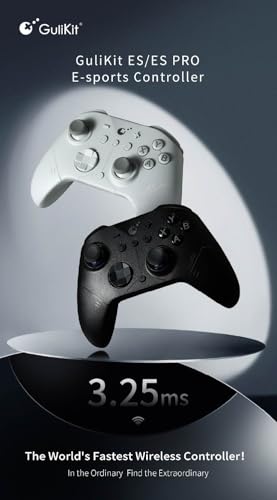 GuliKit ES Fastest Wireless E-sports Game Controller with Lowest Wireless Latency 3.25ms, 2200-level Anti-Drift Magnetic Hall Effect Joysticks, Compatible with Windows/Switch/Android/Switch 2 Wake-up