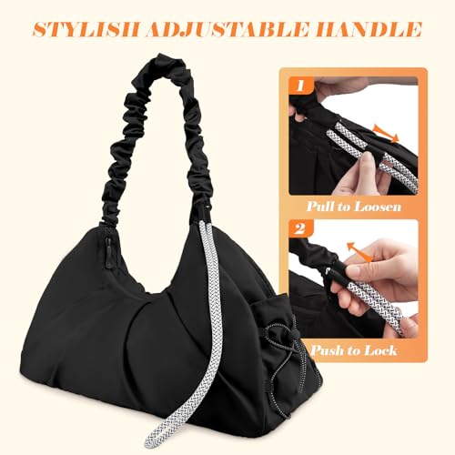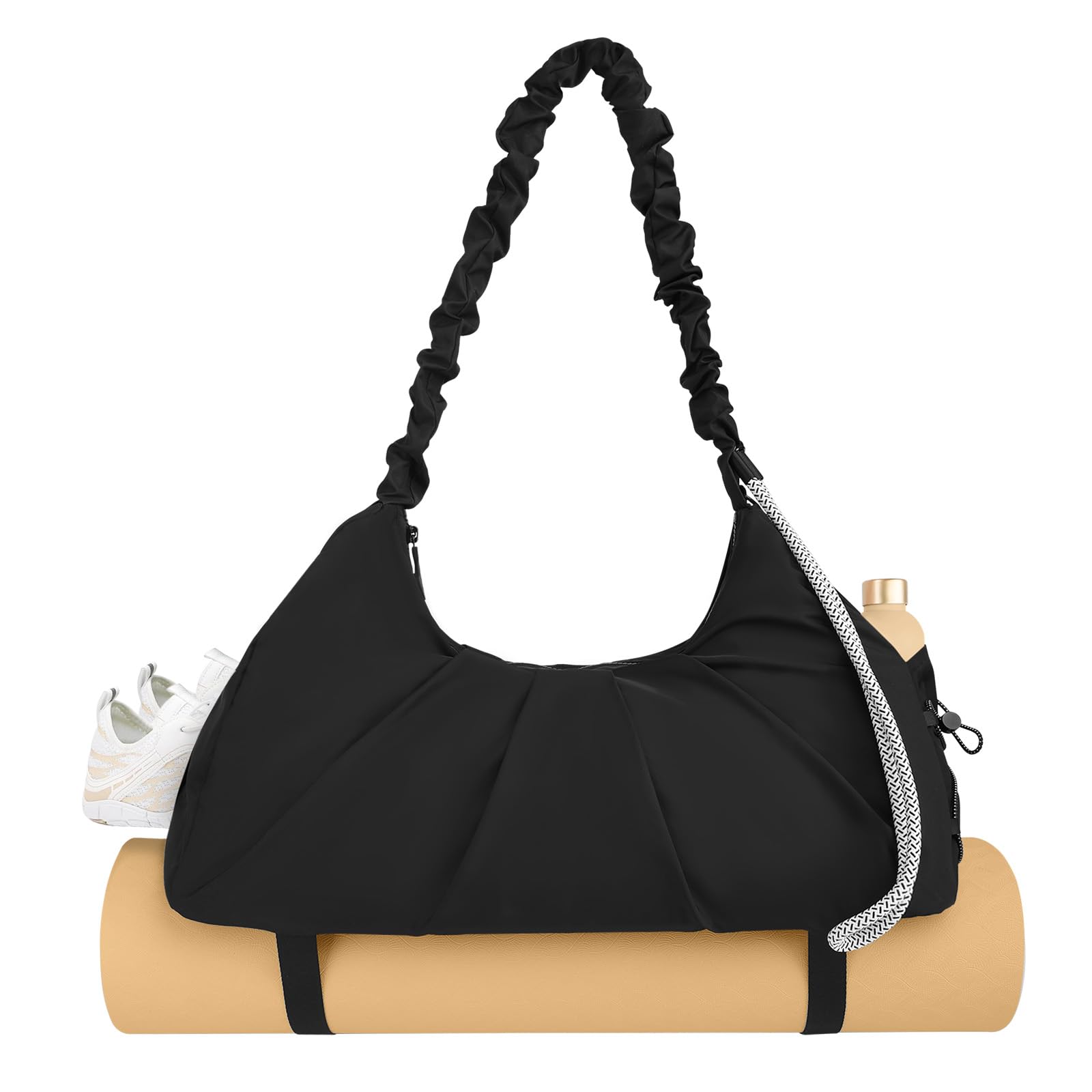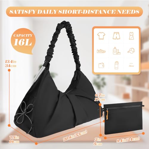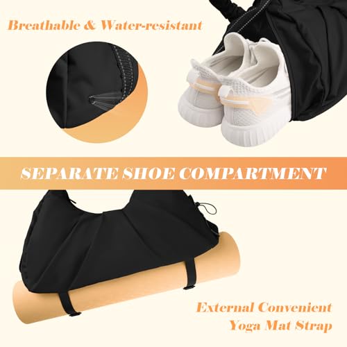Gym Bag for Women, Water-Resistant Sports Bag with Shoes Compartment, Lightweight Yoga Mat Bag, Small Travel Duffle Bag, Weekend Overnight Organiser Carry On Bag, Black
