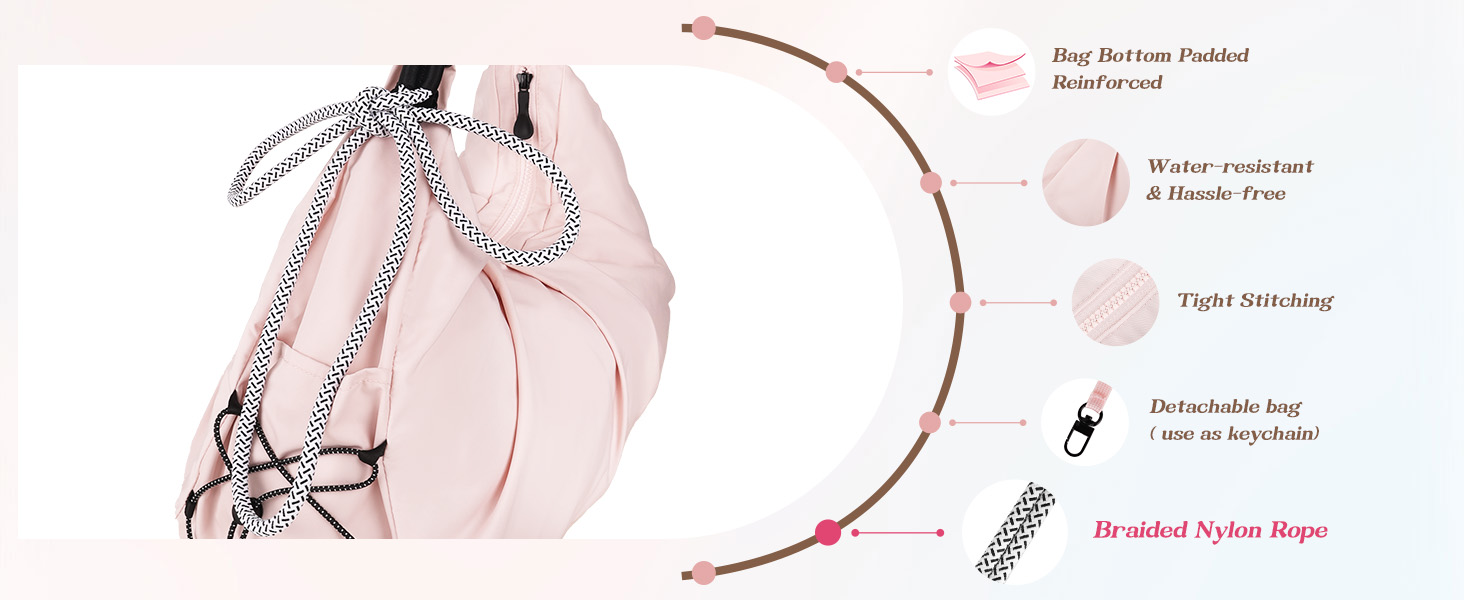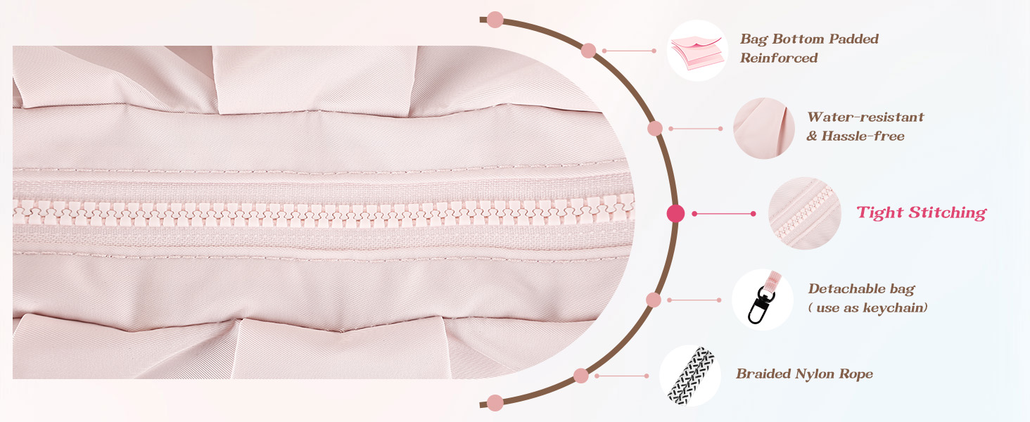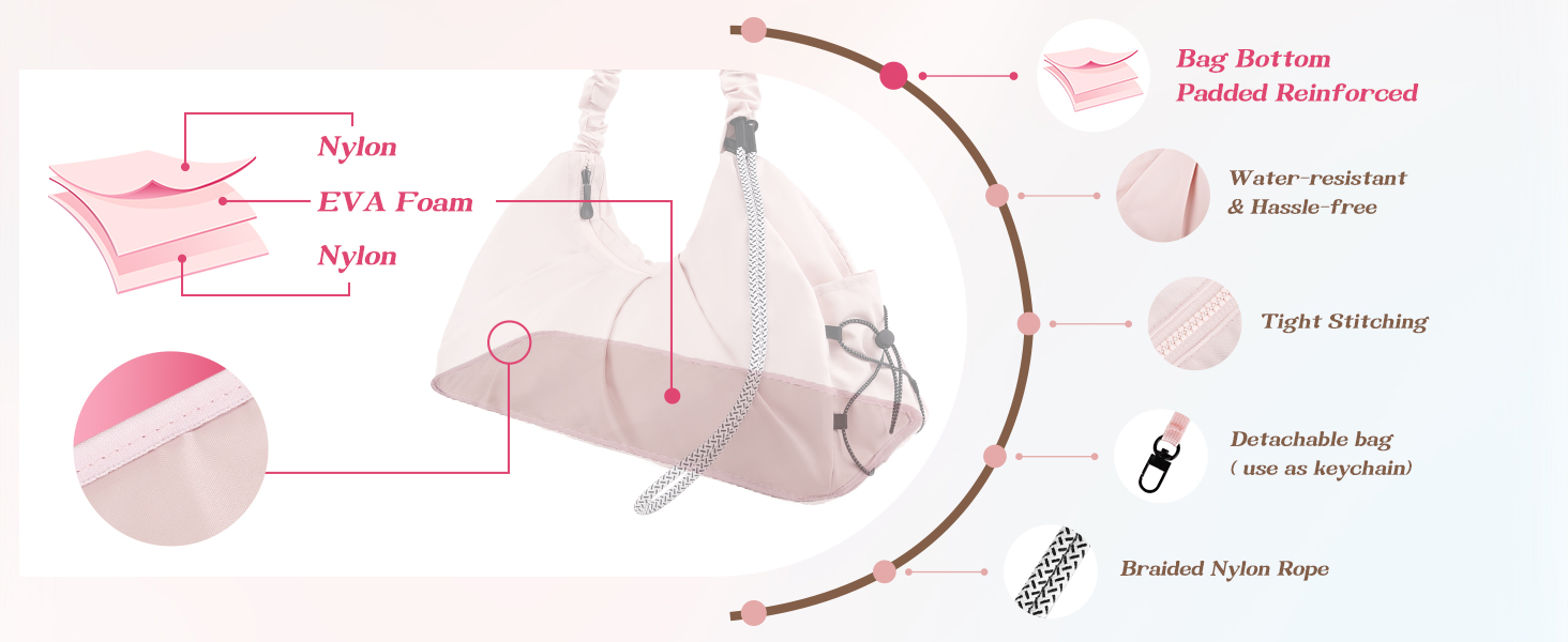 Nylon Material: The fabric used in this gym bag is sturdy and water-resistant, which ensures long-term use and is practical in changeable weather.