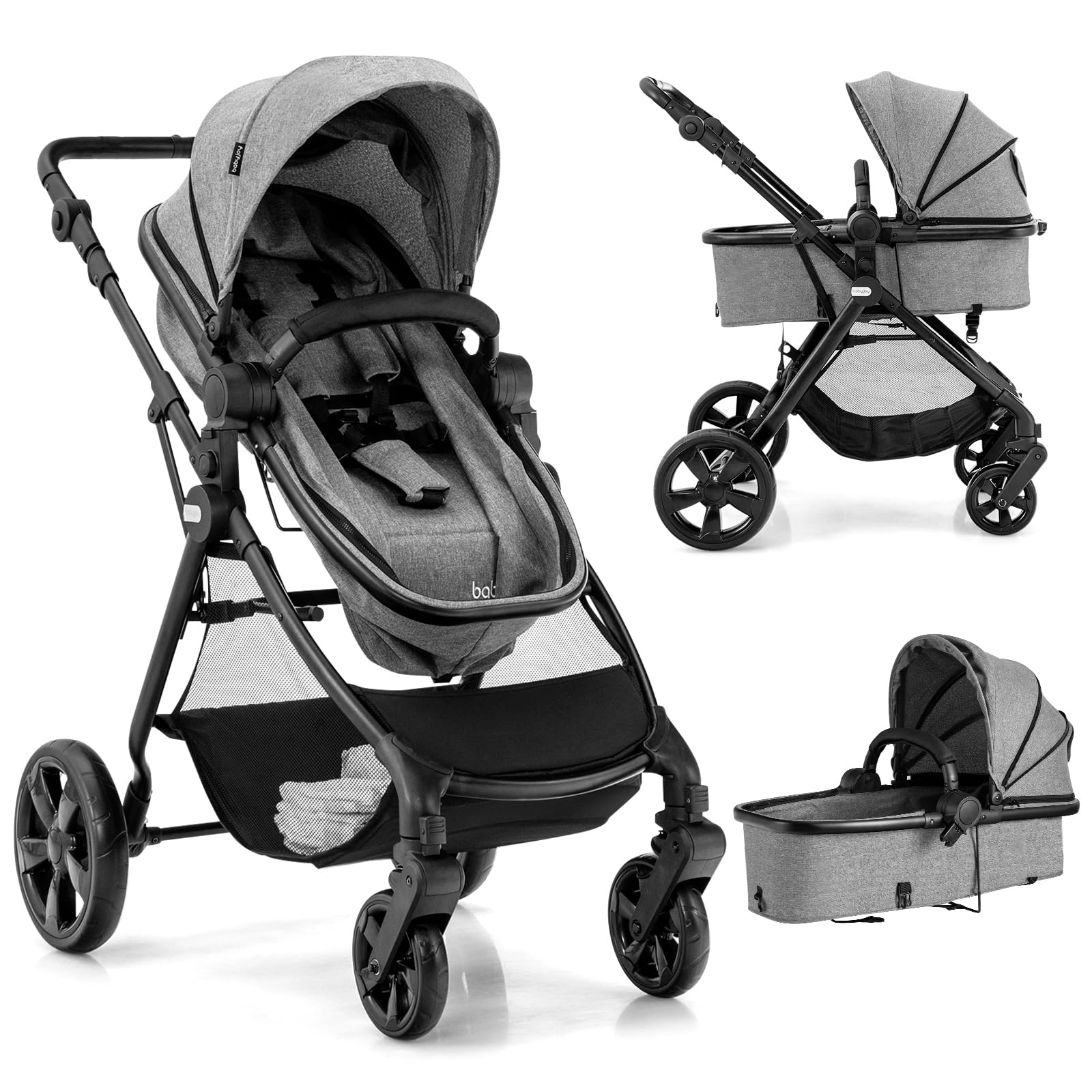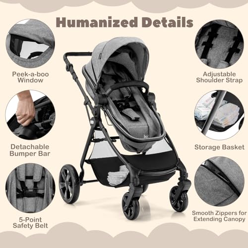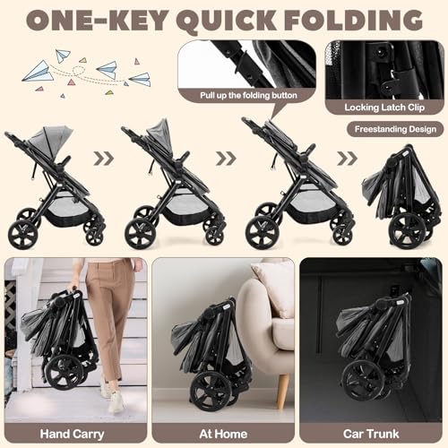 GYMAX Foldable Baby Stroller, All in One Toddler Pushchair with Adjustable Backrest/Canopy/Handle and Storage Bag, Portable Convertible Buggy Pram for 0-3 Years Old Newborns (Gray)