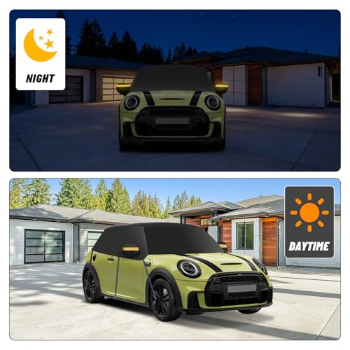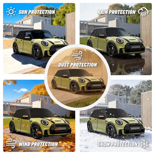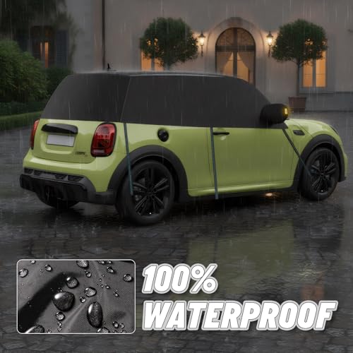 Half Car Cover for Mini Cooper 3 Door (2000-2024), Waterproof Car Top Cover with Straps, Custom Fit Top Roof Protector Cover for All Weather Protectio