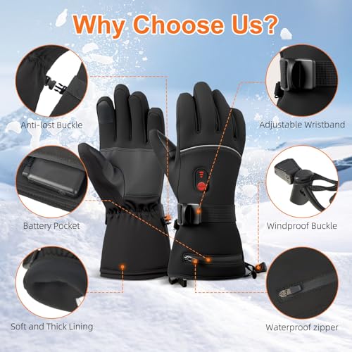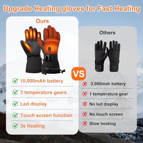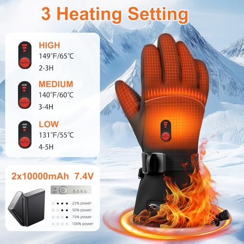 Heated Gloves for Men and Women, USB Heated Gloves Rechargeable with 7.4V 20000 mAh Battery Packs, Touchscreen and 3 Heat Settings for Hunting Cycling Skiing Hiking Camping Working