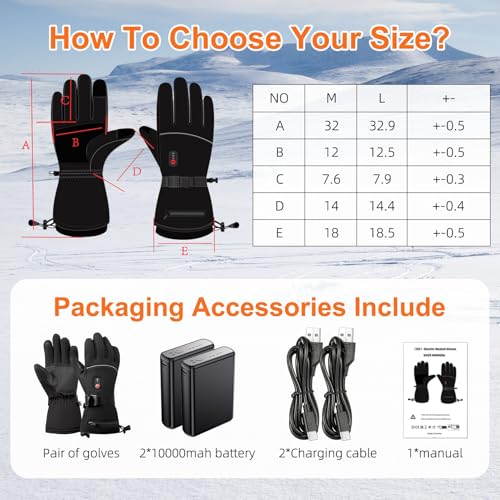 【Touchscreen-Compatible & Secure Fit – For Work & Cycling】Designed for modern life, these rechargeable heated gloves feature finger touchscreen compatibility. The adjustable wrist strap and elastic cuff lock out wind and snow. A perfect fit for all, they function seamlessly as heated work gloves or heated cycling gloves for demanding conditions.