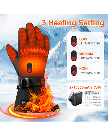 【Rapid 10-Second Heat & Extended Battery Life – Ideal for Arthritis】Equipped with a robust 7.4V 10000mAh battery, these heated gloves deliver rapid 10-second warmth for up to 6 hours. Heat evenly distributes from the back of the hand to each fingertip, offering therapeutic relief and making them exceptional heated gloves for arthritis, Raynaud's syndrome, or poor circulation. These battery heated gloves provide reliable, rechargeable comfort for all-day use.