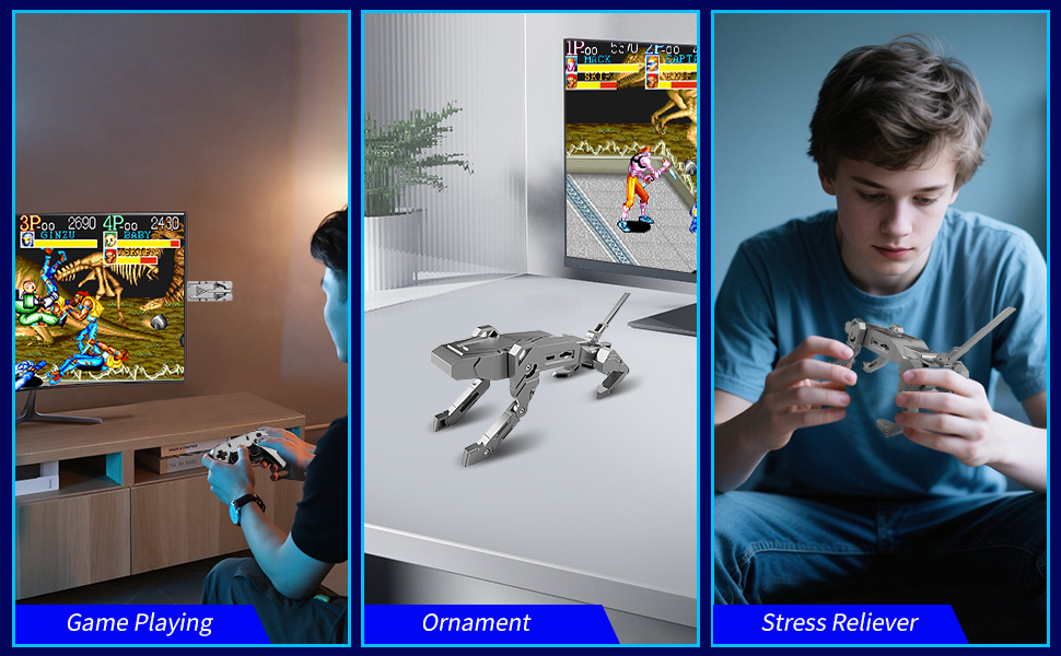 - 3-in-1 Multifunctional Gadget: This gadget is not only a game console, but also a transformable toy. Moreover, it can be used as a stress reliever