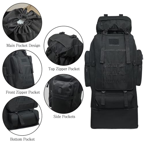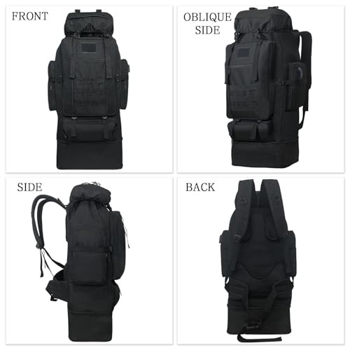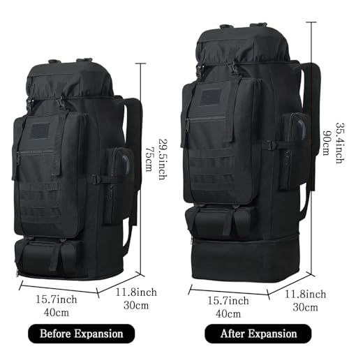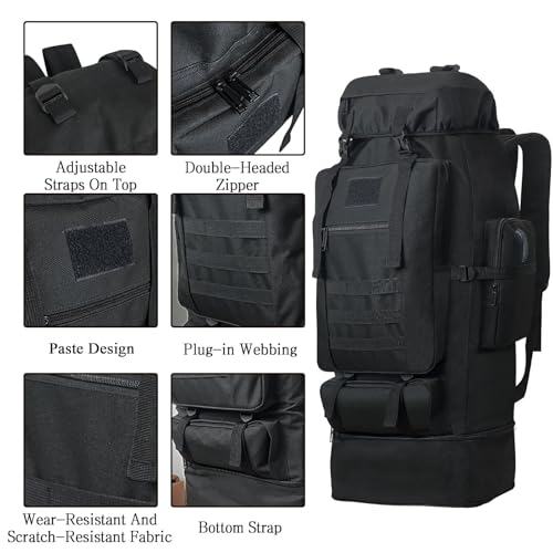 Hiking Backpack 100L Military Tactical Backpack, Rucksack for Men with USB Charging Port, Lightweight Travel Rucksack Water Resistant Camping Backpacks Survival Bag Hiking Bag (Black)