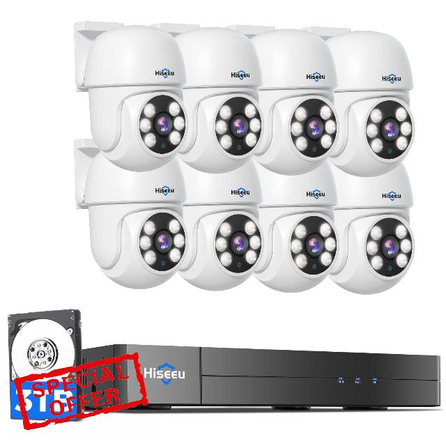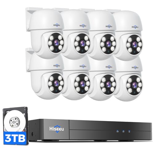Hiseeu 3K Outdoor Wired Security Camera System with 8CH 5MP DVR,8 x 5MP IP67 PTZ CCTV Cameras,360°Coverage,Smart Dual Light & Audio,Person/Vehicle Detection,3TB HDD,100ft Night Vision,24/7 Recording