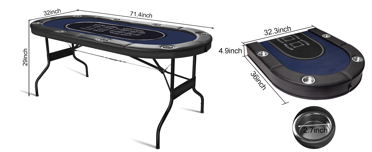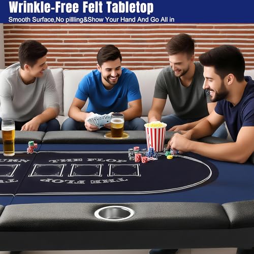 FOLDABLE DESIGN & EASY TO INSTALL: Folds flat in seconds for storage (fits in closets/cars) —ideal foldable poker table for tailgates, game rooms, or apartments. The foldable design of the portable poker table reduces installation time, allowing you to experience the game faster after receiving the table.
