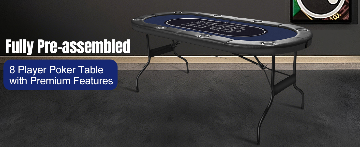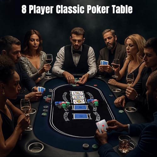 HLC 8 Player Foldable Poker Table for Adults – Professional