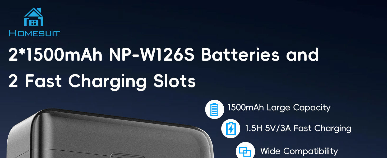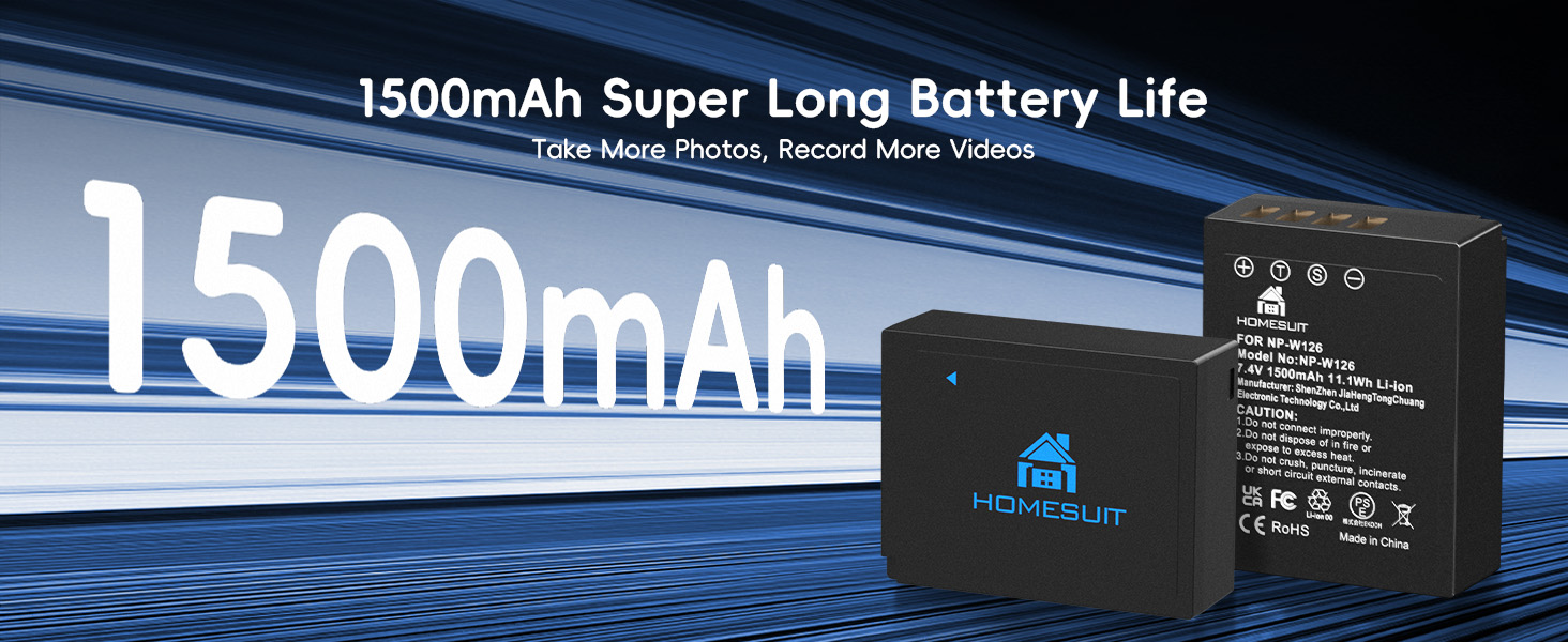 Homesuit NP-W126 NP-W126S Battery 1500mAh and LCD Charger