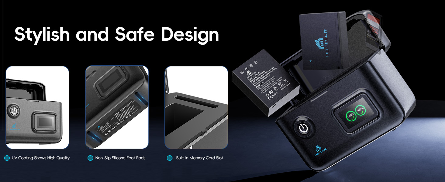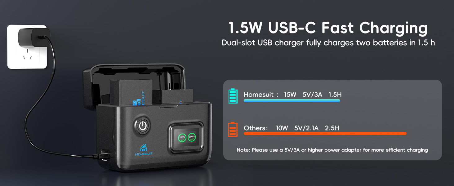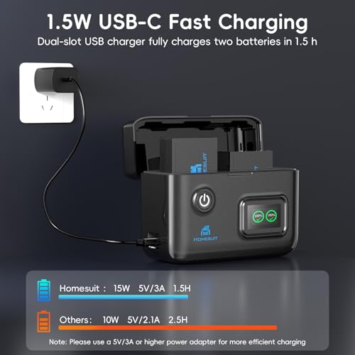 - 【Smart LCD Fast Charging Charger】Equipped with an dual-slot USB-C charger, it supports fast charging of two batteries at the same time, and the 3A input greatly improves efficiency. The clear LCD screen displays the power in real time, and the charging status is clear at a glance with one-button operation.