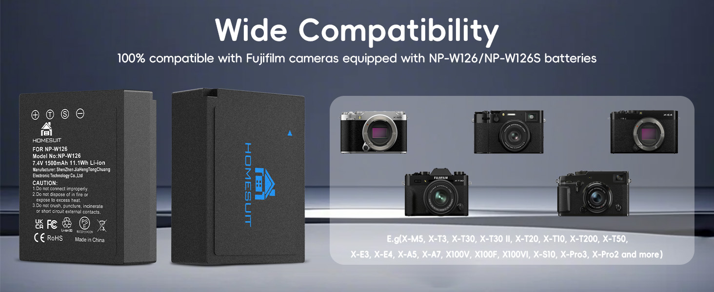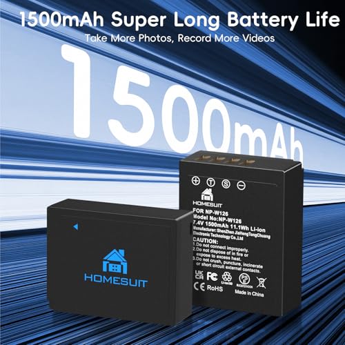 - 【High Capacity & Double Battery Life】Each np-w126s battery has a capacity of 1500mAh, which is equivalent to the original battery performance, and supports in camera charging or external charger. The combination of 2 batteries can easily meet the needs of all-day shooting, and say goodbye to power anxiety.