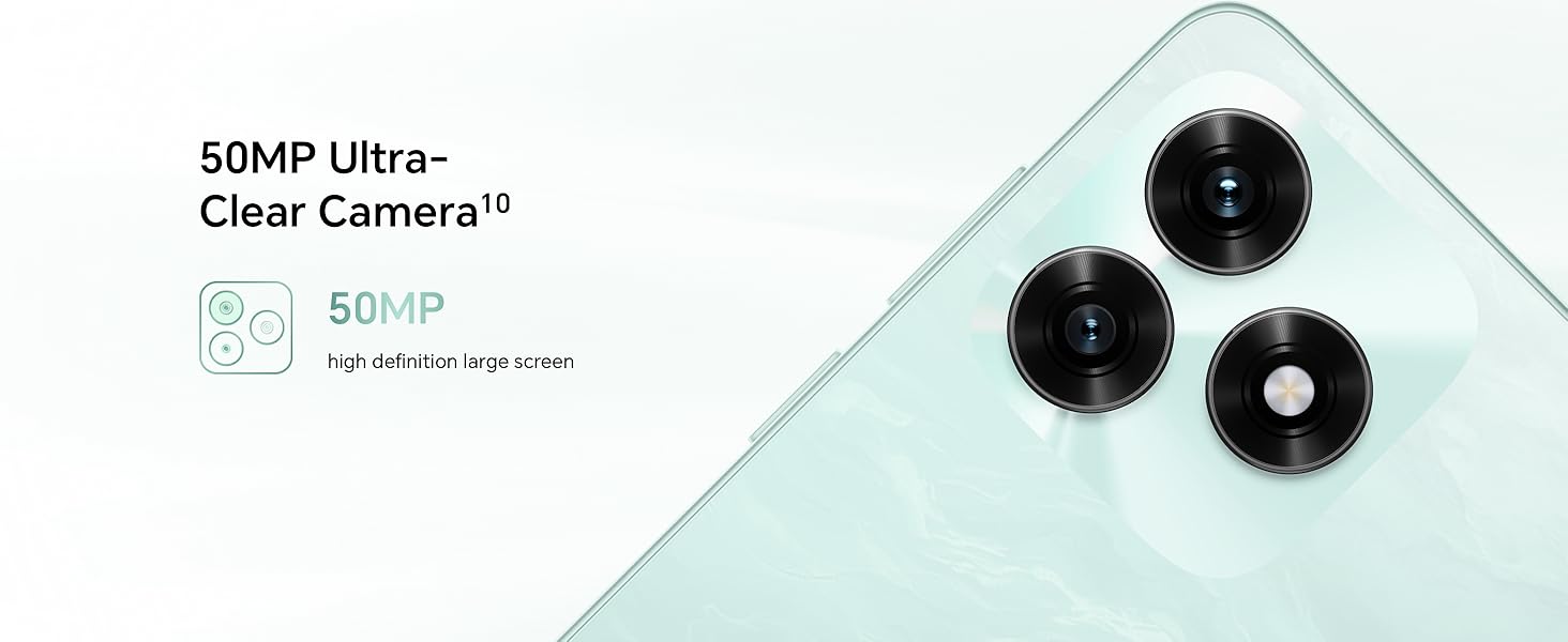 - [50MP Ultra-Clear Dual Camera] – Capture stunning photos with the 50MP+0.08MP AI ultra-clear rear camera and enjoy high-quality selfies with the 5MP front camera.