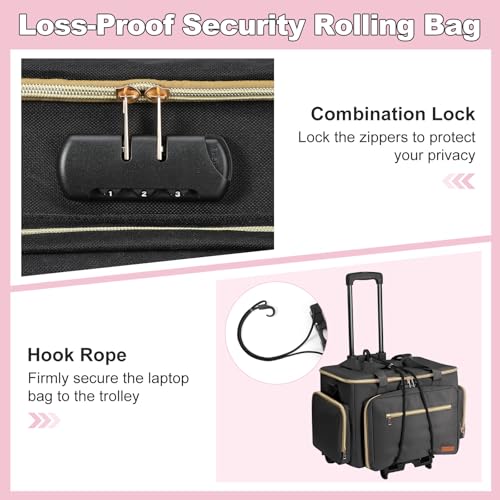 - Multiple Carrying Ways: You can use the top wrapped handle or 2 sides padded handle to carry the laptop tote bag. Also use adjustable shoulder straps for crossbody, allowing you to easily carry essentials to collage, class, and office. Assembling bag and rolling cart makes travel more effortless and convenient.