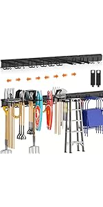 | 14 inch Garden Tote Bag | 14 inch Garden Tote Bag | 64 inch Garden Tool Organizer | Grabber Tool with LED | [4 Pack] Right Angle Clamp | [4 Pack] Bike Wall Mount Rack |