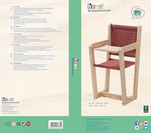 - The howa "Grace" doll high chair is made of solid wood and suitable for movable dolls up to 50 cm.