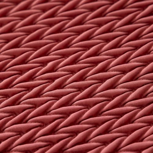 - Modern fabric design seat and backrest – The seat and backrest are sewn with fabric in a warm, brick red colour. The backrest has a great quilted look.