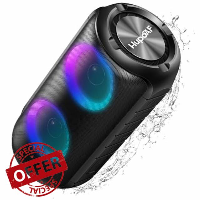 Hupoaf Portable Bluetooth Speaker with Loud Stereo Sound, Speakers Wireless Bluetooth 5.3 with 12Hrs Playtime, IPX7 Waterproof and RGB lights, Built-in Mic Outdoor Speaker for Home/Garden/Party/Travel