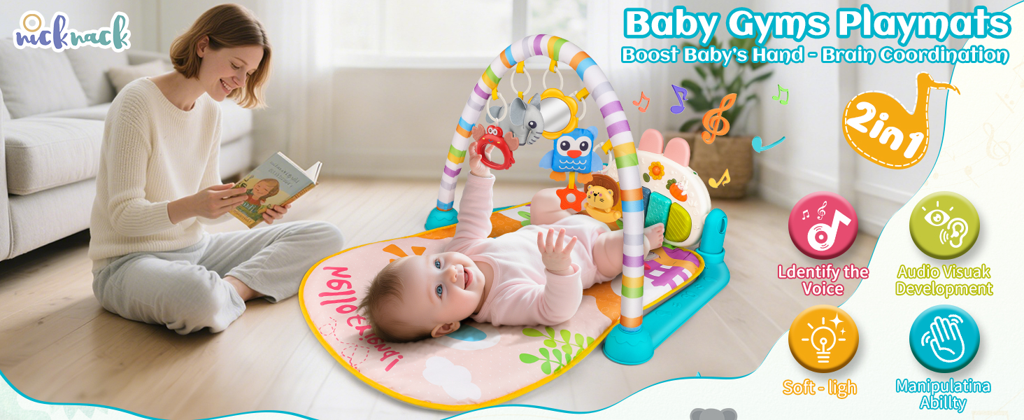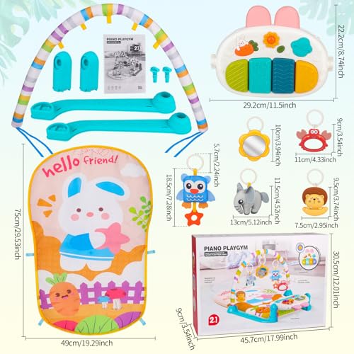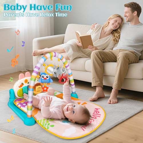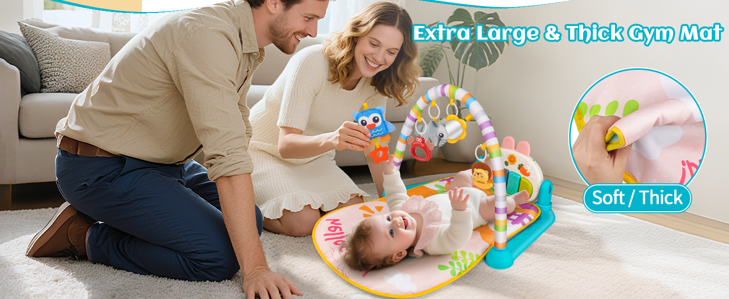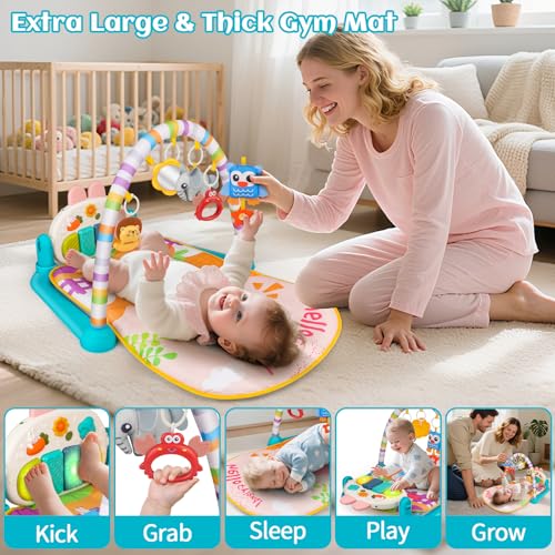 【5-Mode Gym + Thick Mat】This Baby Play Mat features Kick, Grab, Sleep, Play, and Grow modes with 5 detachable hanging toys & a musical piano. The newly upgraded thick mat delivers cushioned comfort during playtime, tummy time, or rest