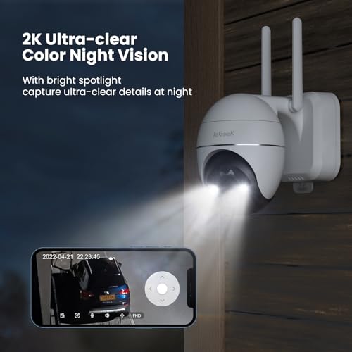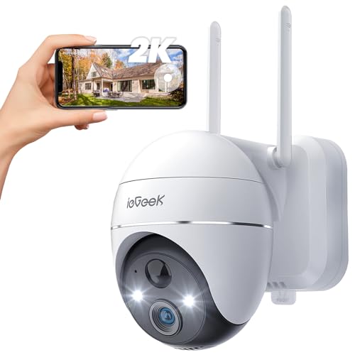 ieGeek 2K 360° Wireless Security Camera Outdoor with Color Night Vision, Rechargeable Battery CCTV Camera Systems, Home PTZ Wifi Camera, Motion Detection, Siren Floodlight,Voice Intercom,Remote Access