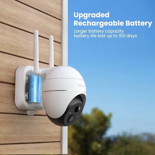 - Upgraded Rechargeable Battery & Compatible with Solar Panel: ieGeek outdoor security camera has upgraded rechargeable battery built-in, which makes the battery lifespan last up to 150 days after full charging. You don't need to charge the camera frequently anymore! The cctv camera is compatible with an ieGeek solar panel(Not Included), if you use the solar panel to recharge, then you don’t need to take off the camera and plug in to recharge.
