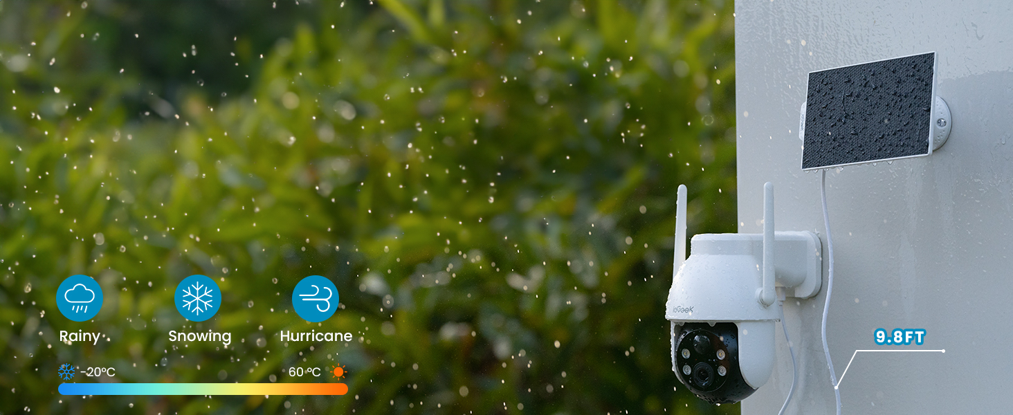 Made of high-quality waterproof materials, ieGeek outside camera can resist extreme weather, suitable for outdoor use.