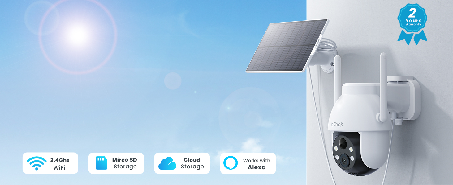 - No Subscriptions + 2 Year Warranty – Buy with Confidence: ieGeek CCTV Solar Camera supports Micro memory card storage (up to 128GB, not included) and provides free lifetime 6s video storage (retained for 7 days). ieGeek Cam APP supports remote viewing on multiple devices and sharing with multiple users. 2-year warranty gives you peace of mind.(Work with Alexa)