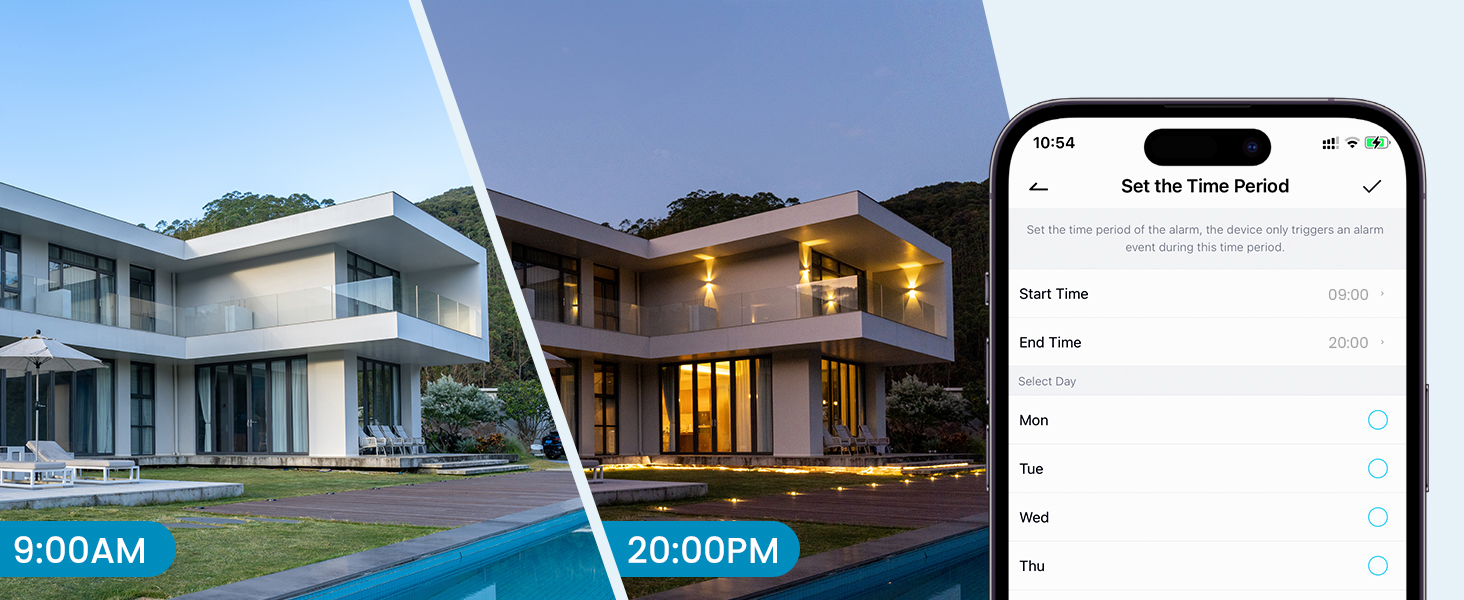 Set the time period of alarm, the security camera only triggers alarms during the set period.