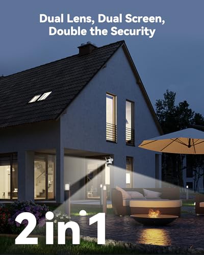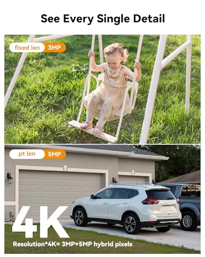 【360° Full Coverage Monitoring & Motion Tracking】The fixed lens supports manual angle adjustment within 0-260° pan and 0-30° tilt range, allowing you to set the monitoring angle you desire for continuous surveillance; the rotating lens enables automatic angle adjustment within 0-355° pan and 0-90° tilt range, tracking movements of people or vehicles, truly achieving 360° surveillance coverage without blind spots, ensuring no dynamic details are missed.