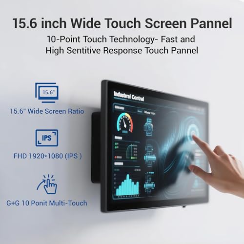 Powered by Celeron N5095 processor and Windows 11, this 15.6" industrial panel PC features G+G 10-point capacitive touchscreen (1920×1080). Its fanless design with multiple I/O ports (USB, LAN, DB9/RS232, HDMI, Type-C). With included mounting hook, it supports embedded and wall-mounted installation.