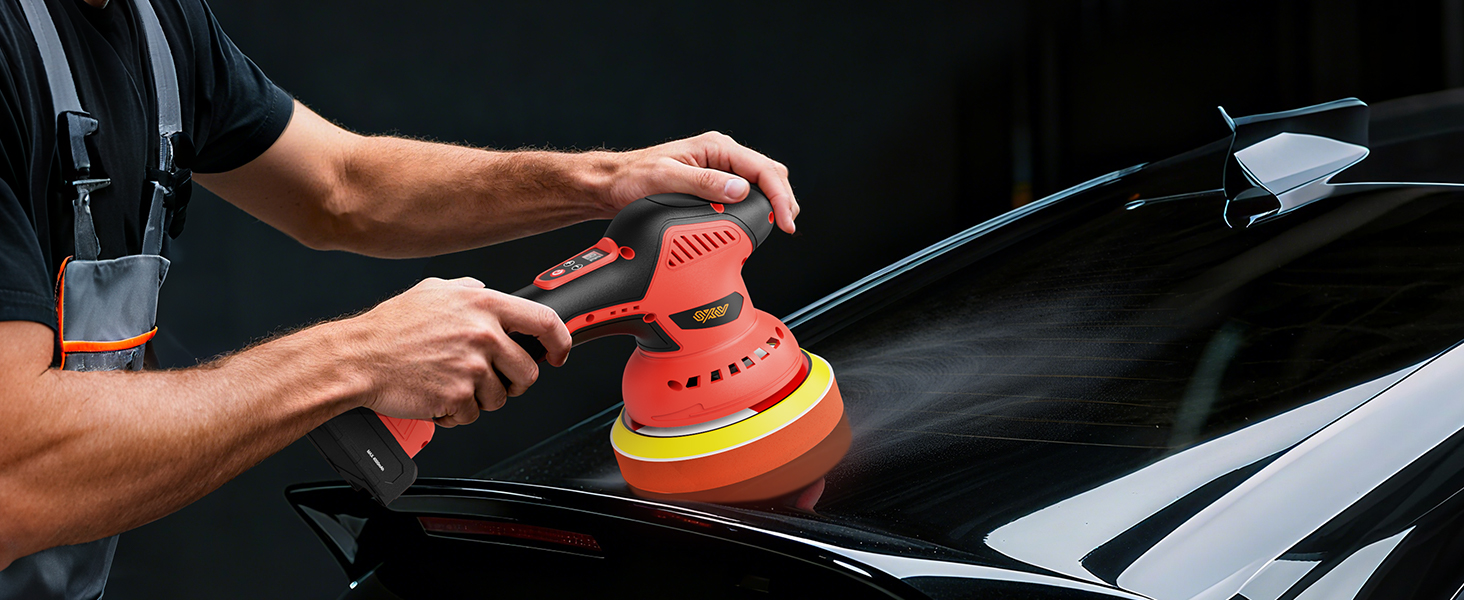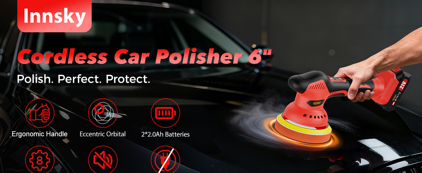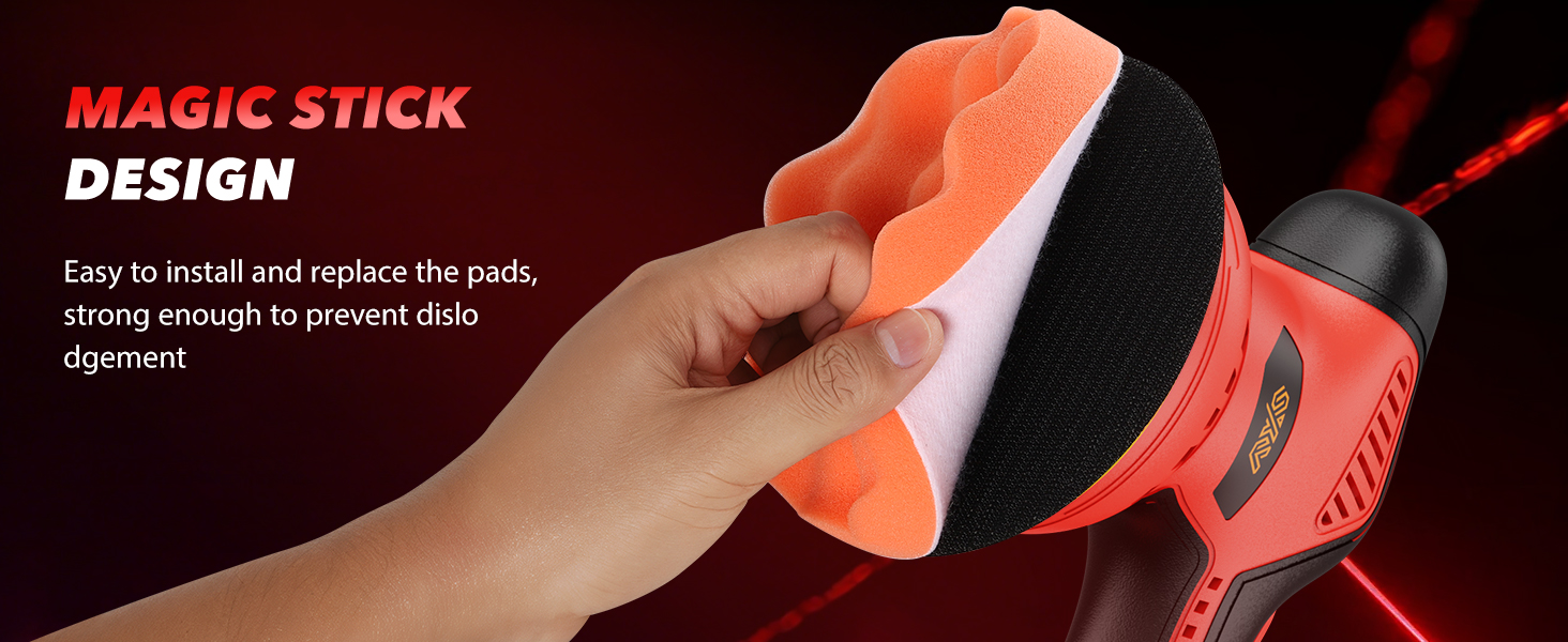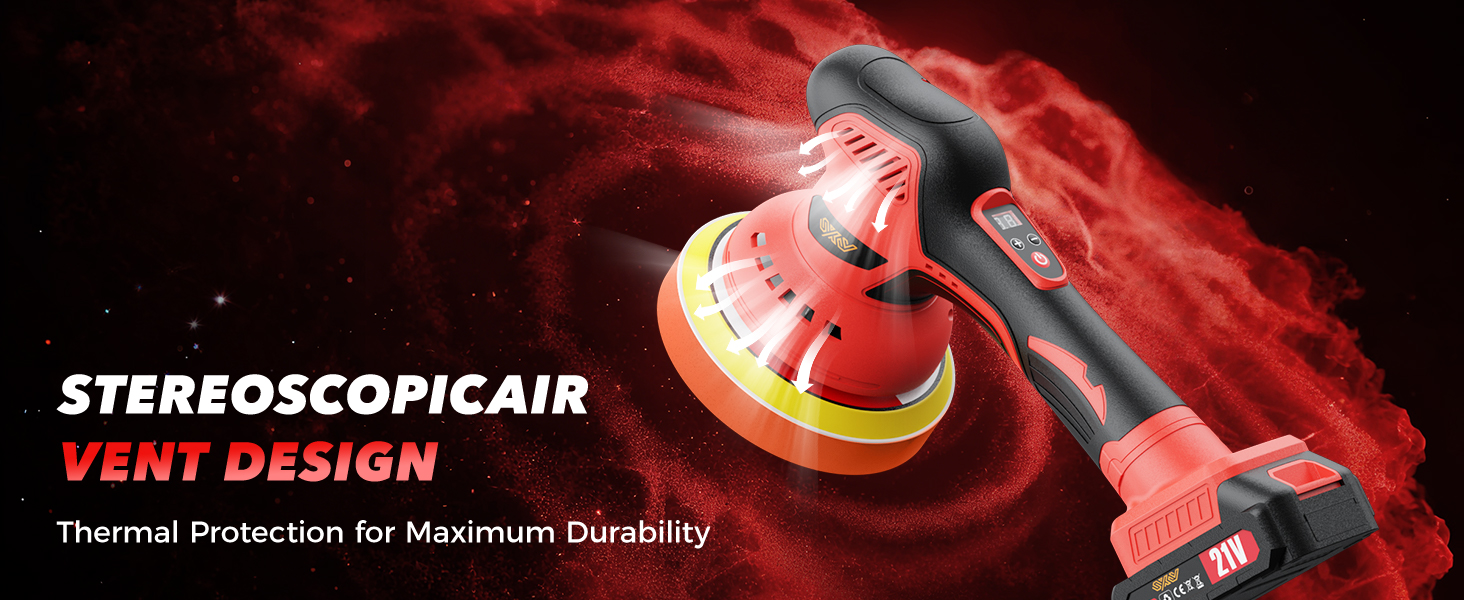 【Ergonomic Design & Cordless Convenience】 Designed with an ergonomic handle, this car polishing machine offers a comfortable grip to reduce hand fatigue during long use, and improving the flexibility and accuracy of operation. Its cordless and lightweight build lets you move freely, experience unlimited mobility and lightweight control, even when polishing hard-to-reach areas like car bumpers or furniture corners.