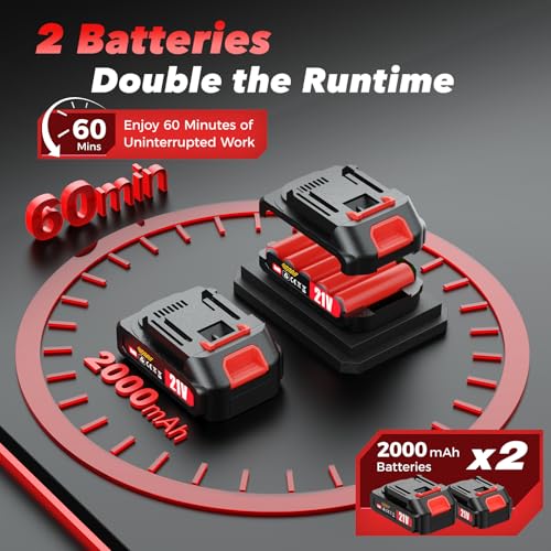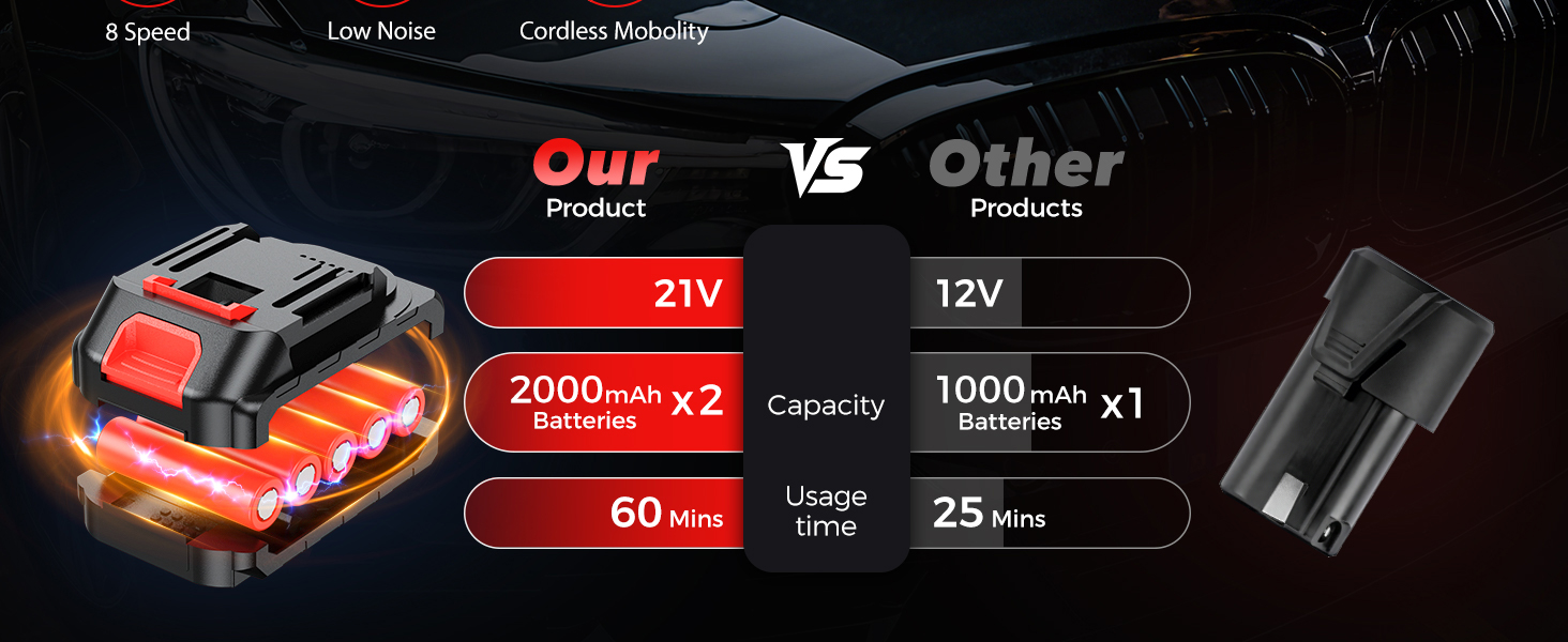【Dual 21V Rechargeable Batteries】 The car buffer polisher machine comes with 2*21V 2000mAh batteries, delivering up to 60 minutes of total runtime (30min per battery), eliminating worries about running out of power mid-task. You can use one while charging the other, ensuring non-stop operation, ideal for polishing entire cars or large household surfaces without interruptions. (Please fully charge before using it)