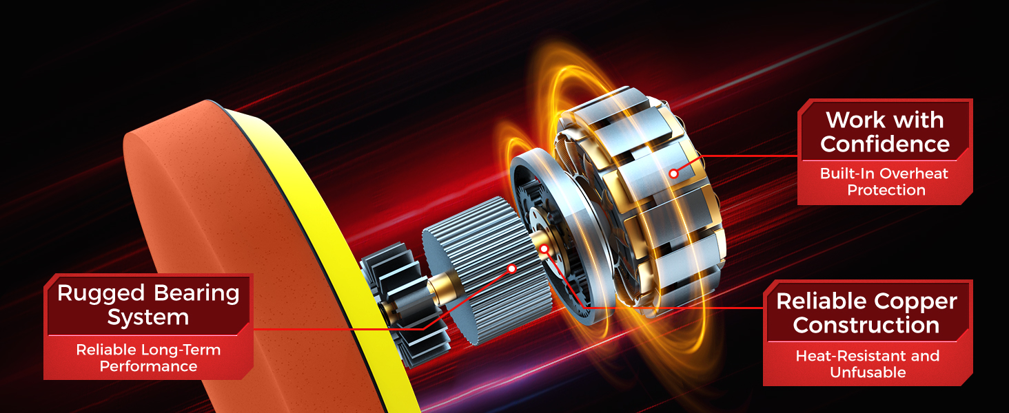 【Powerful Heat Dissipation & Low Noise】 This car polishing machine is built with a 3D stereo heat dissipation structure that rapidly dissipates heat, preventing overheating even during prolonged high speed use, effectively protecting internal components and extending the tool’s lifespan. the precision-engineered pure copper motor operates with low noise (below 75dB), ensuring a quiet working environment whether you’re polishing in the garage, indoors on furniture, or in noise-sensitive spaces, can be used for car, marble, wood, metal, ceramic tile, yacht or boat and etc.